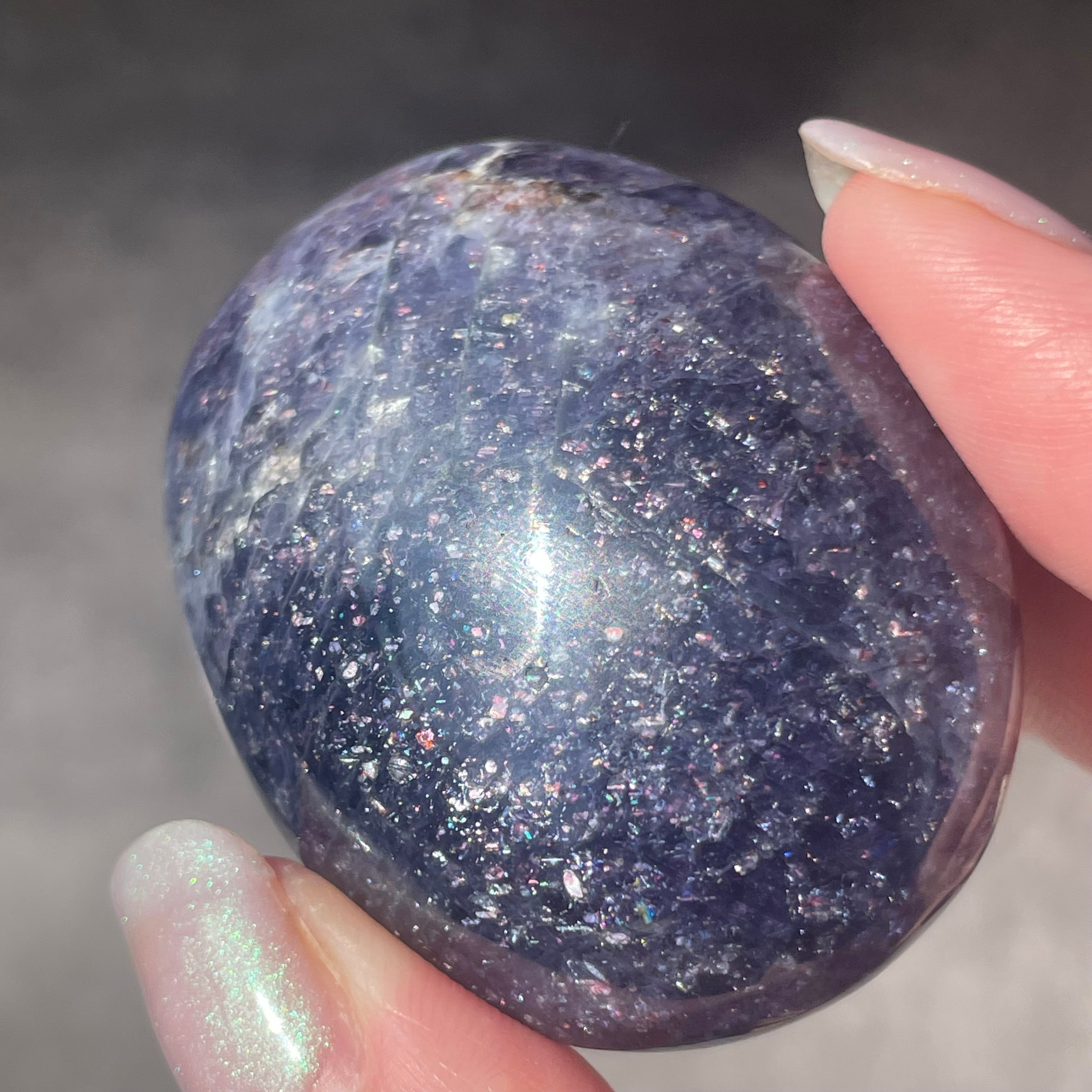 透明感のある青紫の輝きと、見る角度によって変化するGALAXYな輝きに見惚れる美しい天然石です。