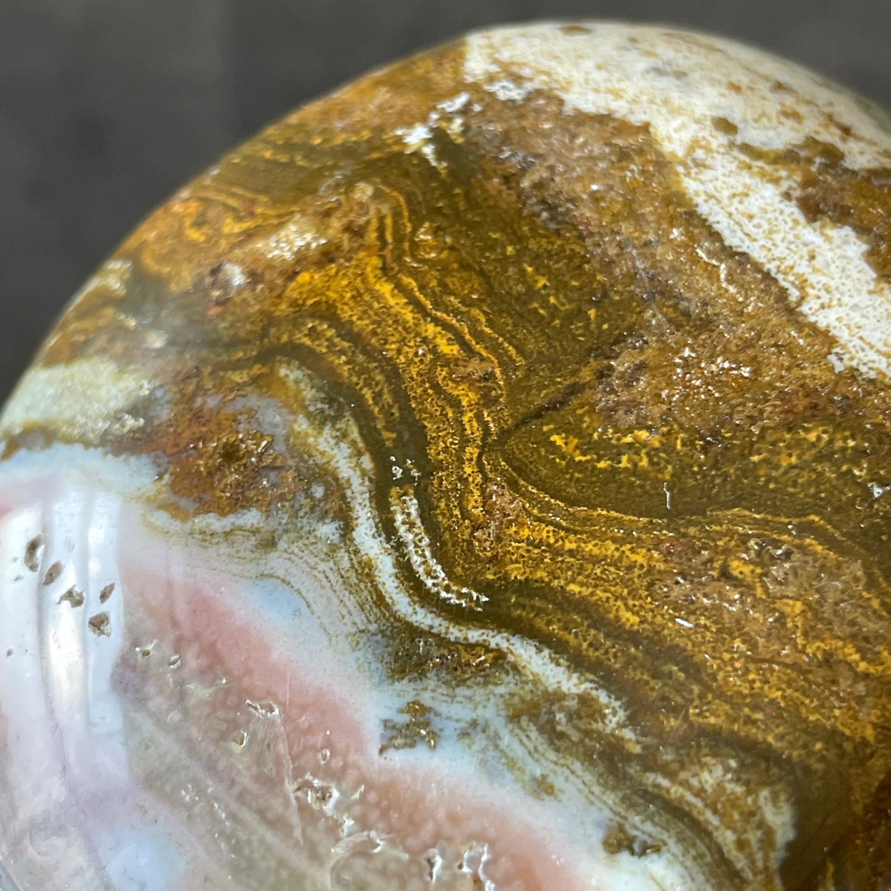 オーシャンジャスパーは、海を思わせる波模様とカラフルな斑点が特徴の石。見ているだけで心が落ち着き、自然の癒しを感じられます。持つ人に穏やかさとポジティブなエネルギーを与えてくれる天然石です。