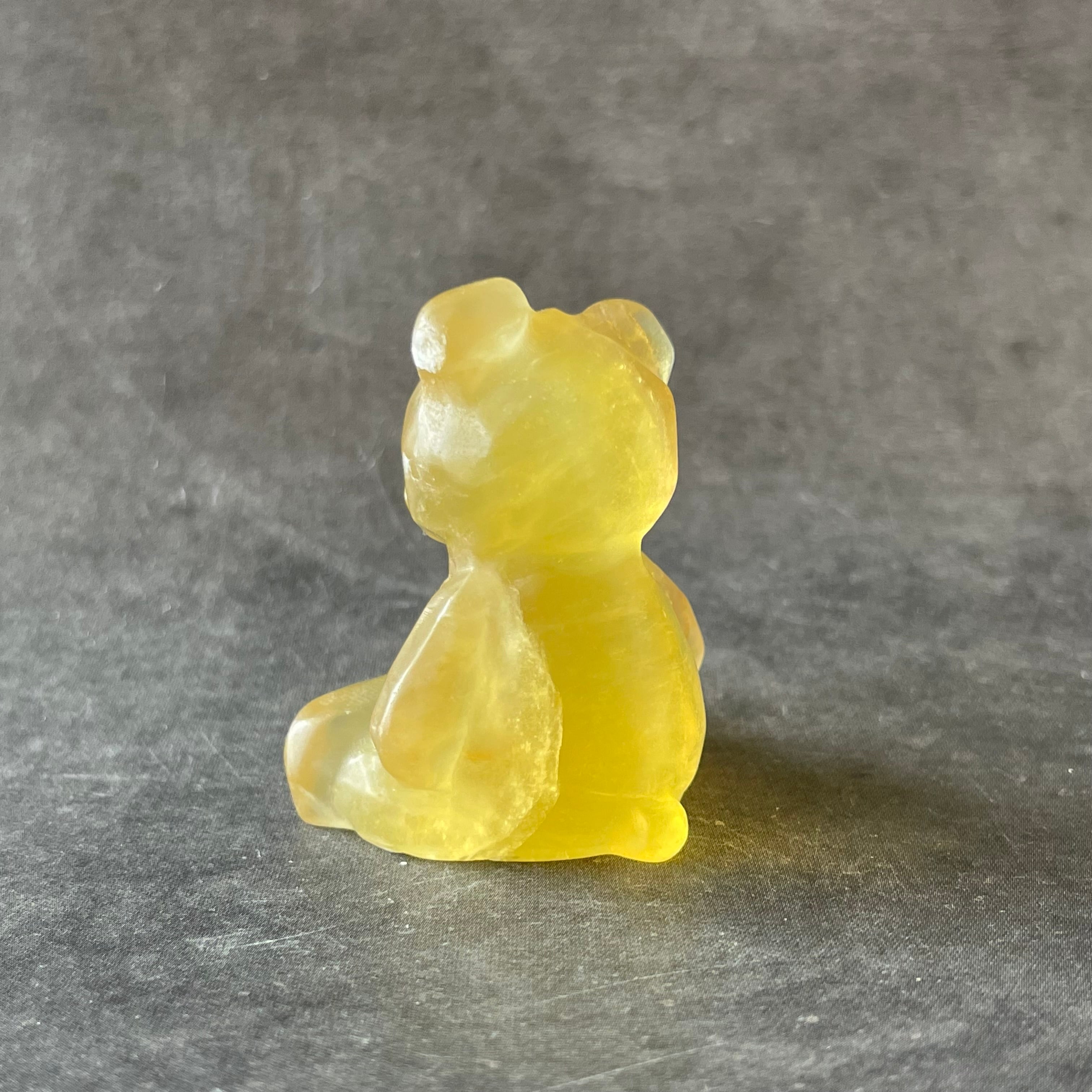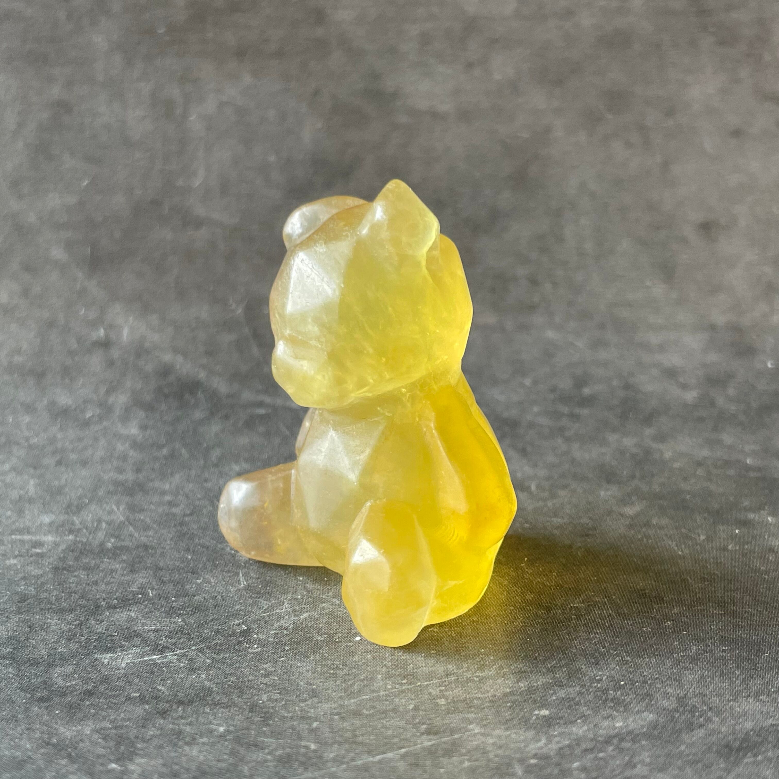 ころんとした愛らしいくまの形にカービングされたイエローフローライト。見ているだけで癒される可愛らしさがあります。