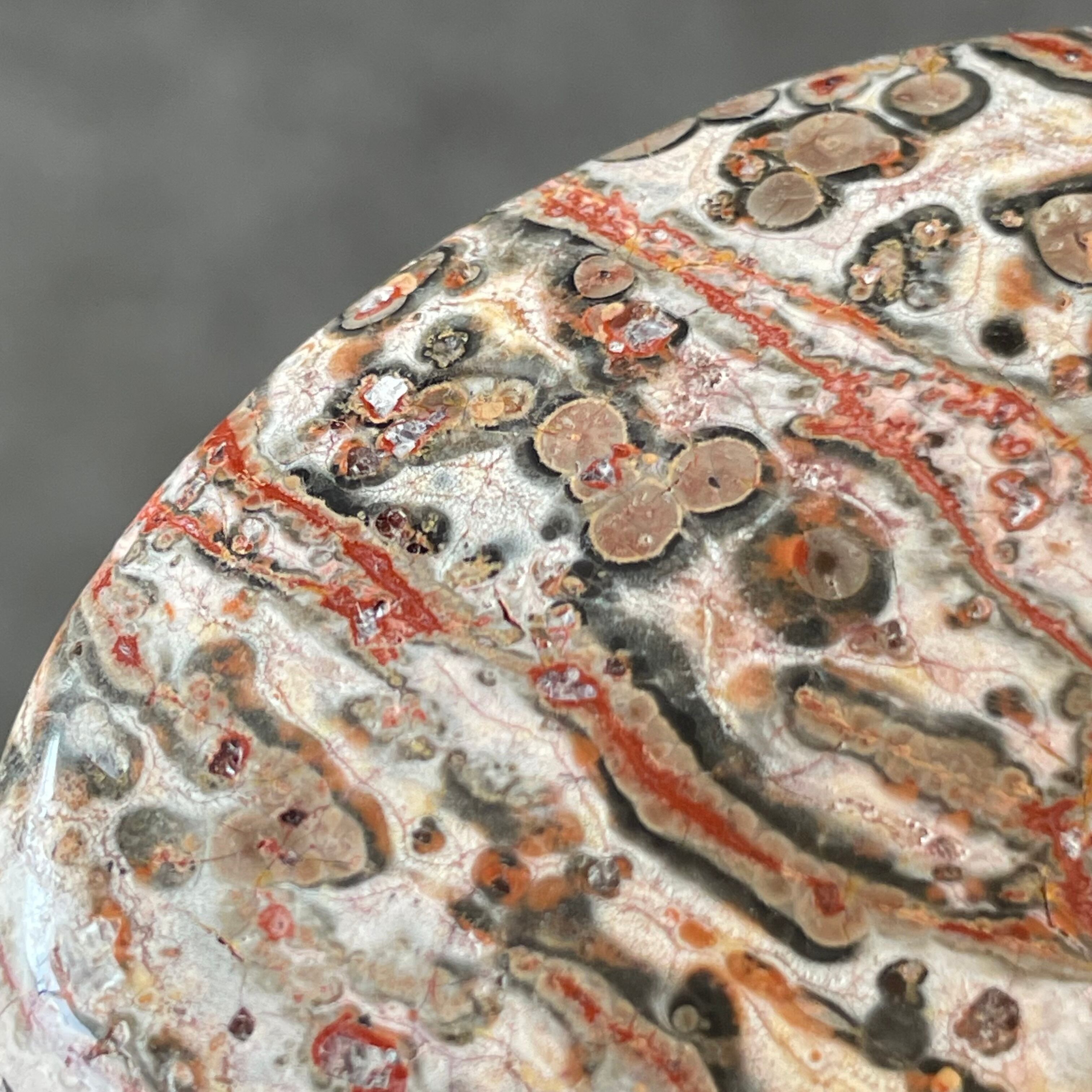 ヒョウ柄のような独特の模様に自然の神税を感じます。たまらないクセありストーンです。