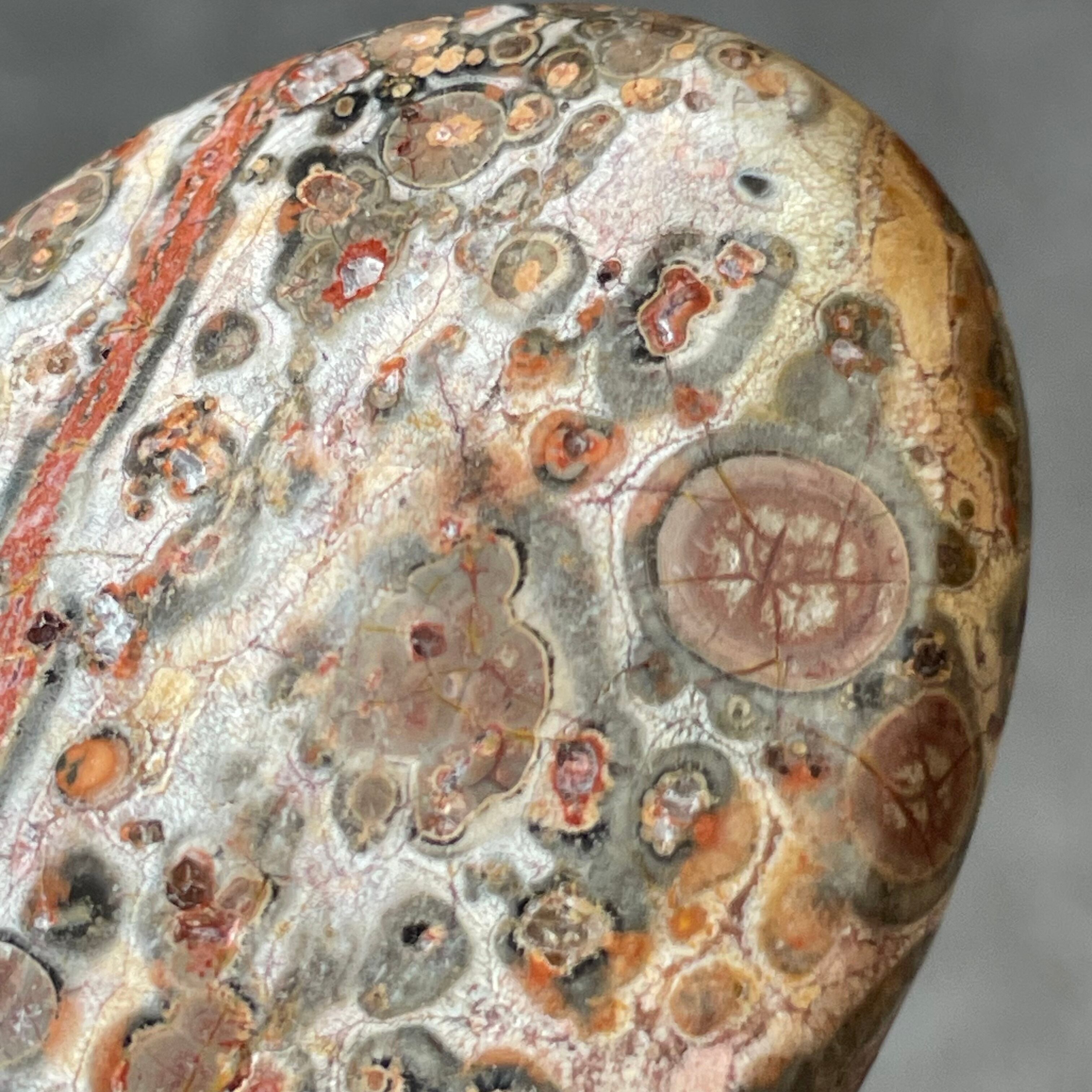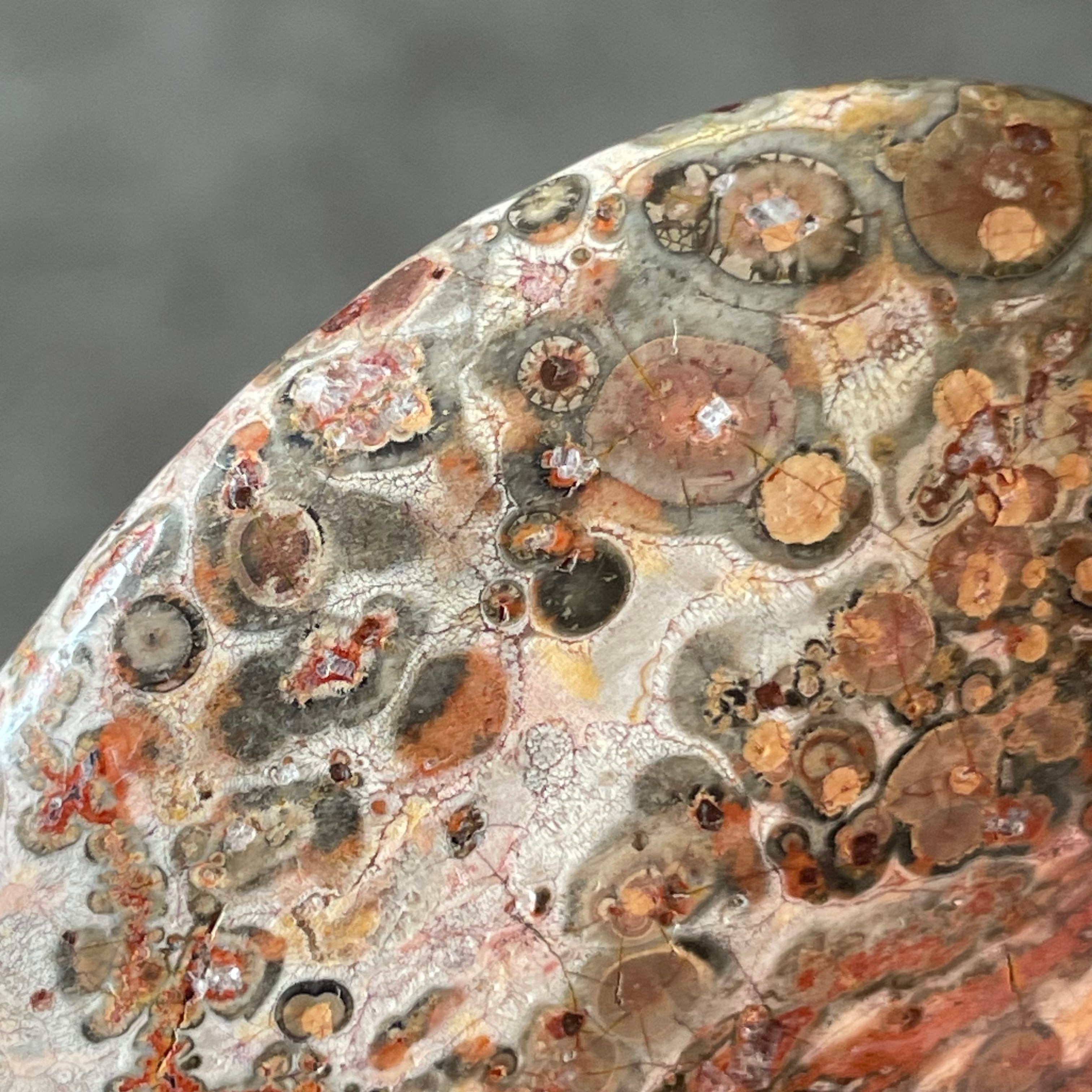 ヒョウ柄のような独特の模様に自然の神税を感じます。たまらないクセありストーンです。