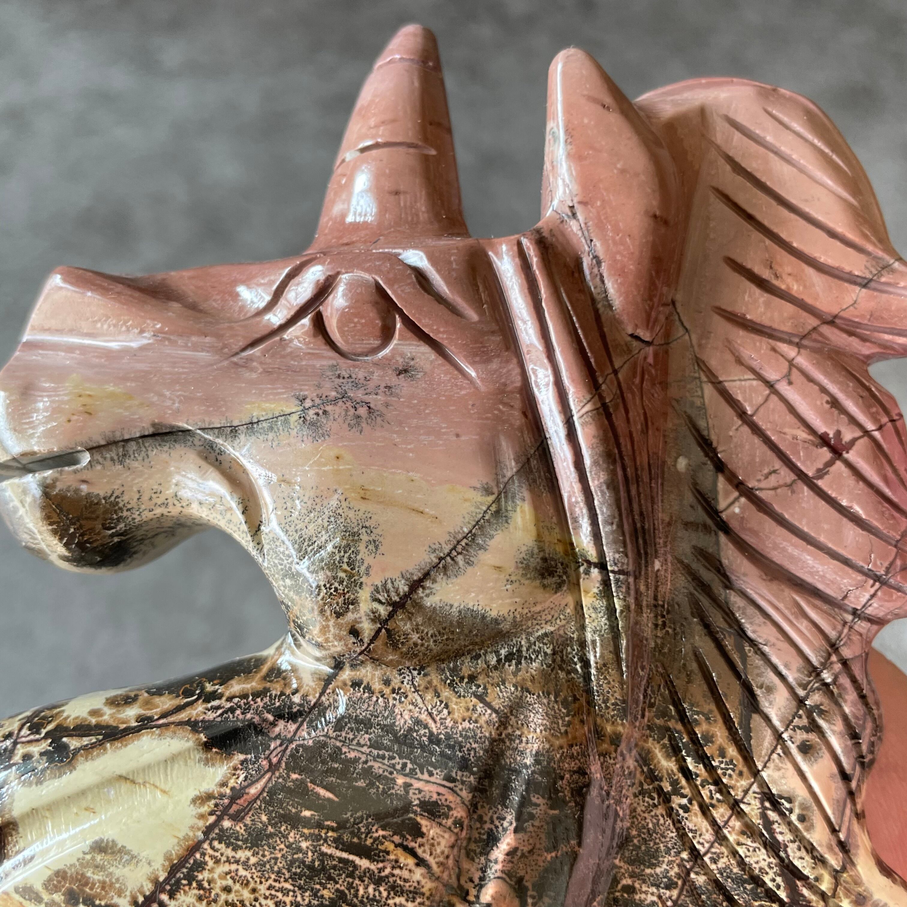 ピンク×ブラウンカラーの融合で、優しい空気を纏うピクチャージャスパーのユニコーン。