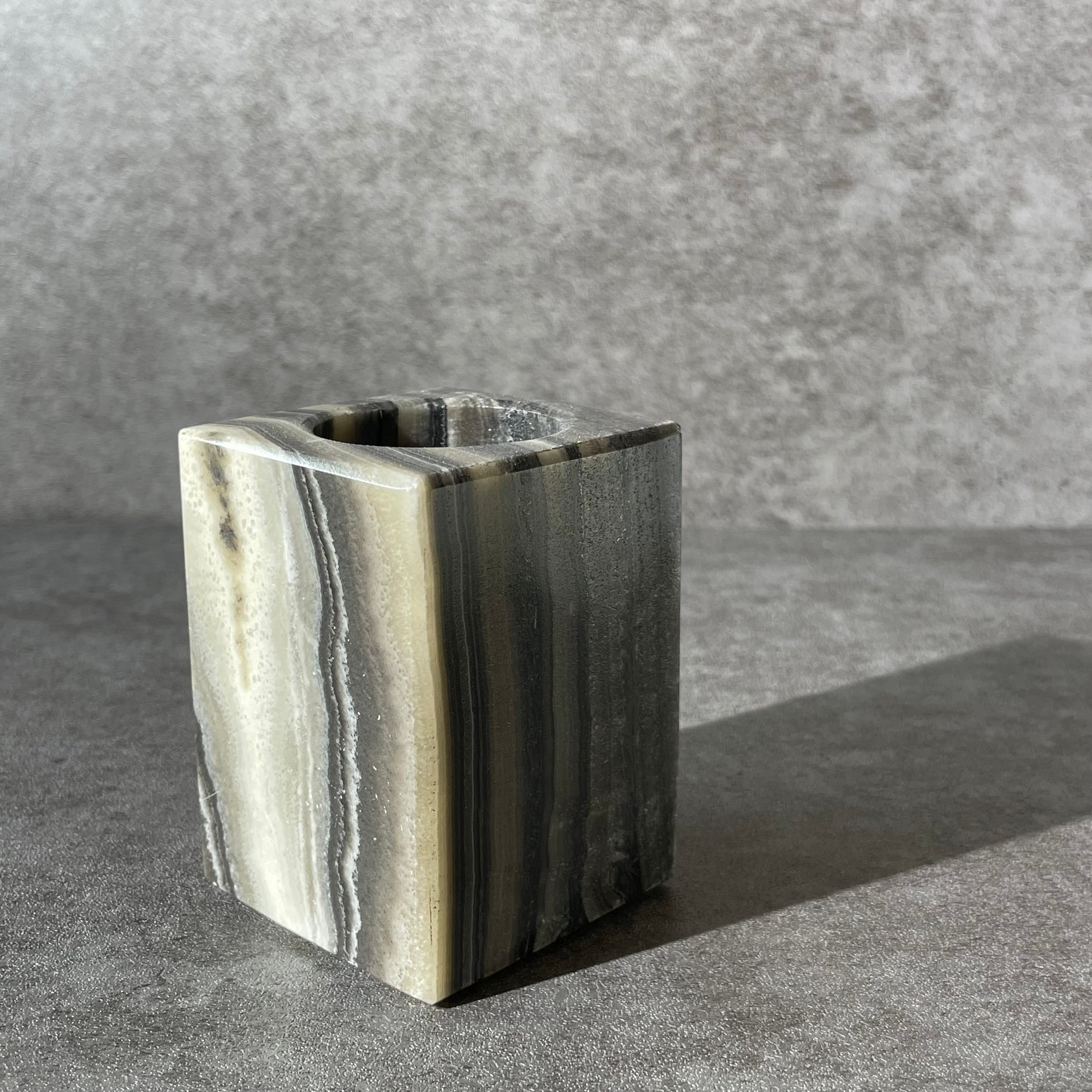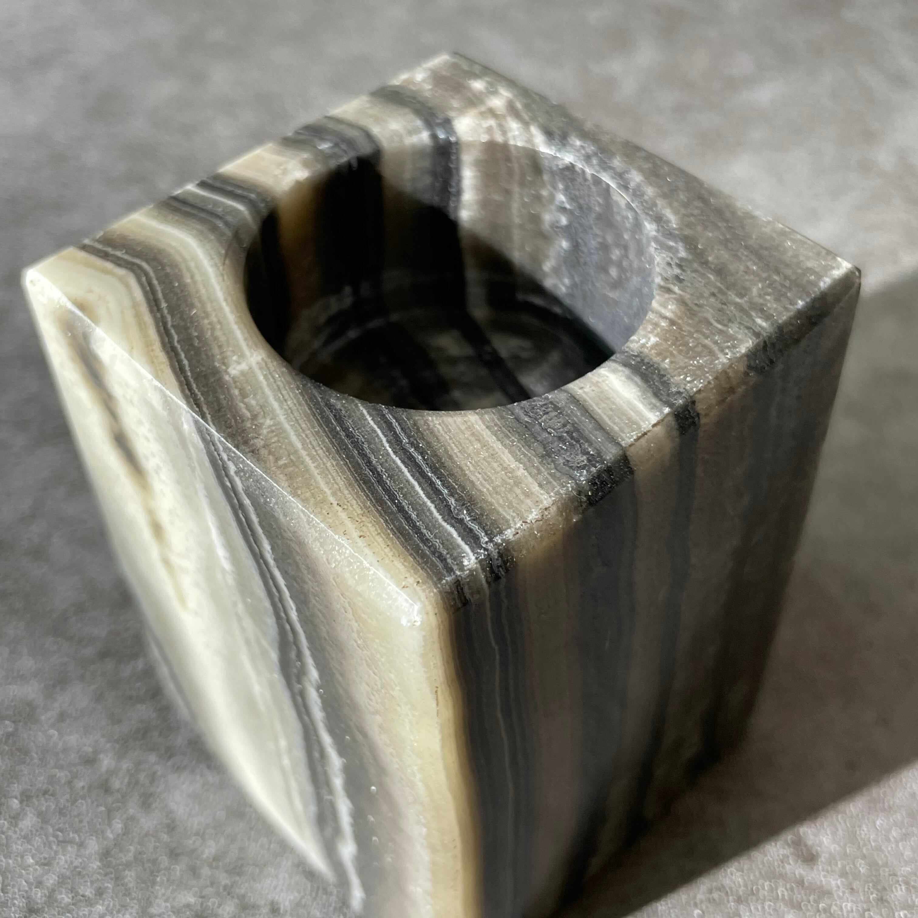 白と黒が織りなす個性的な模様が美しいゼブラストーンのキャンドルホルダーです。