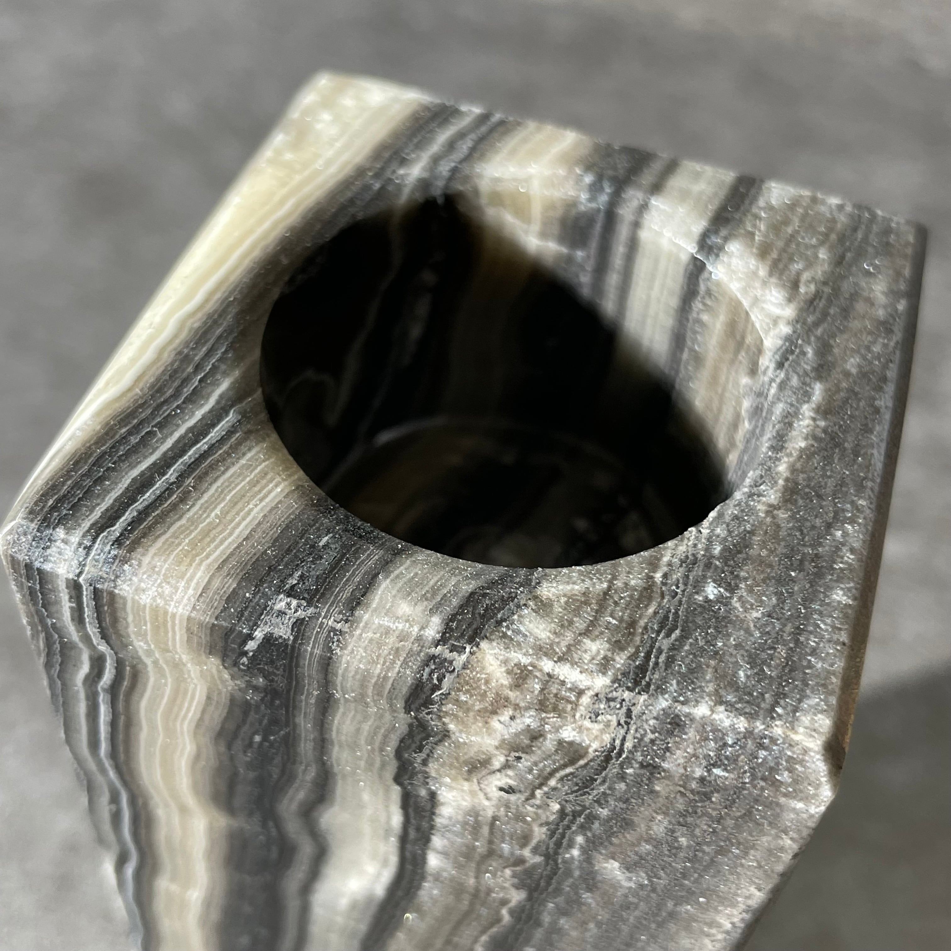 白と黒が織りなす個性的な模様が美しいゼブラストーンのキャンドルホルダーです。