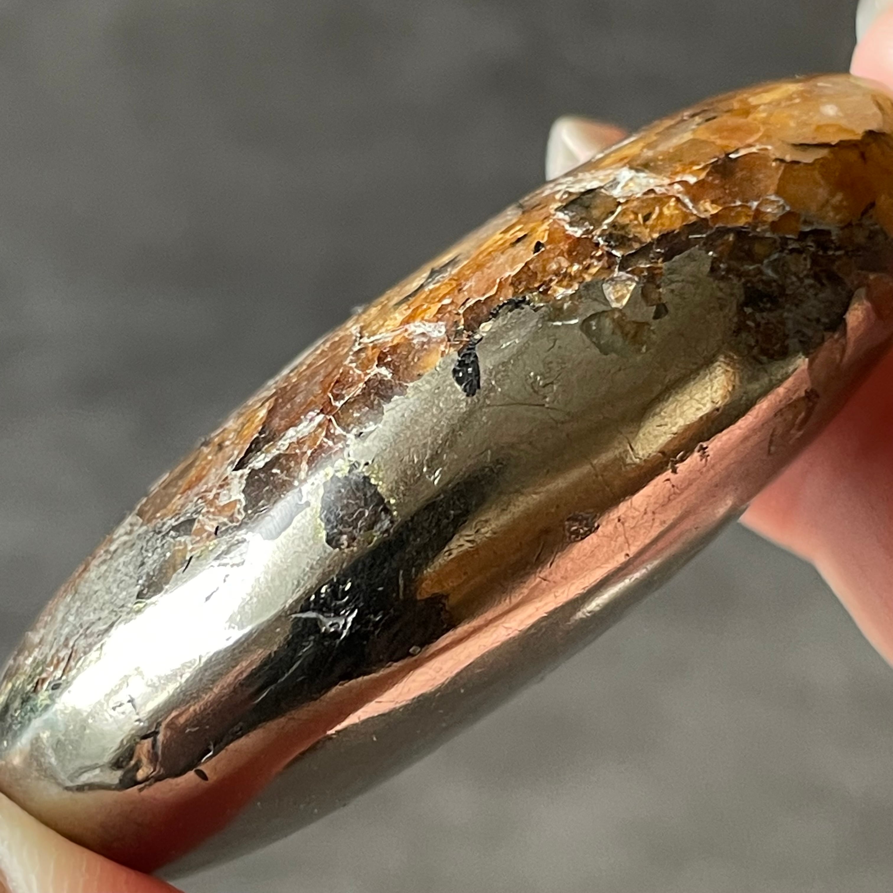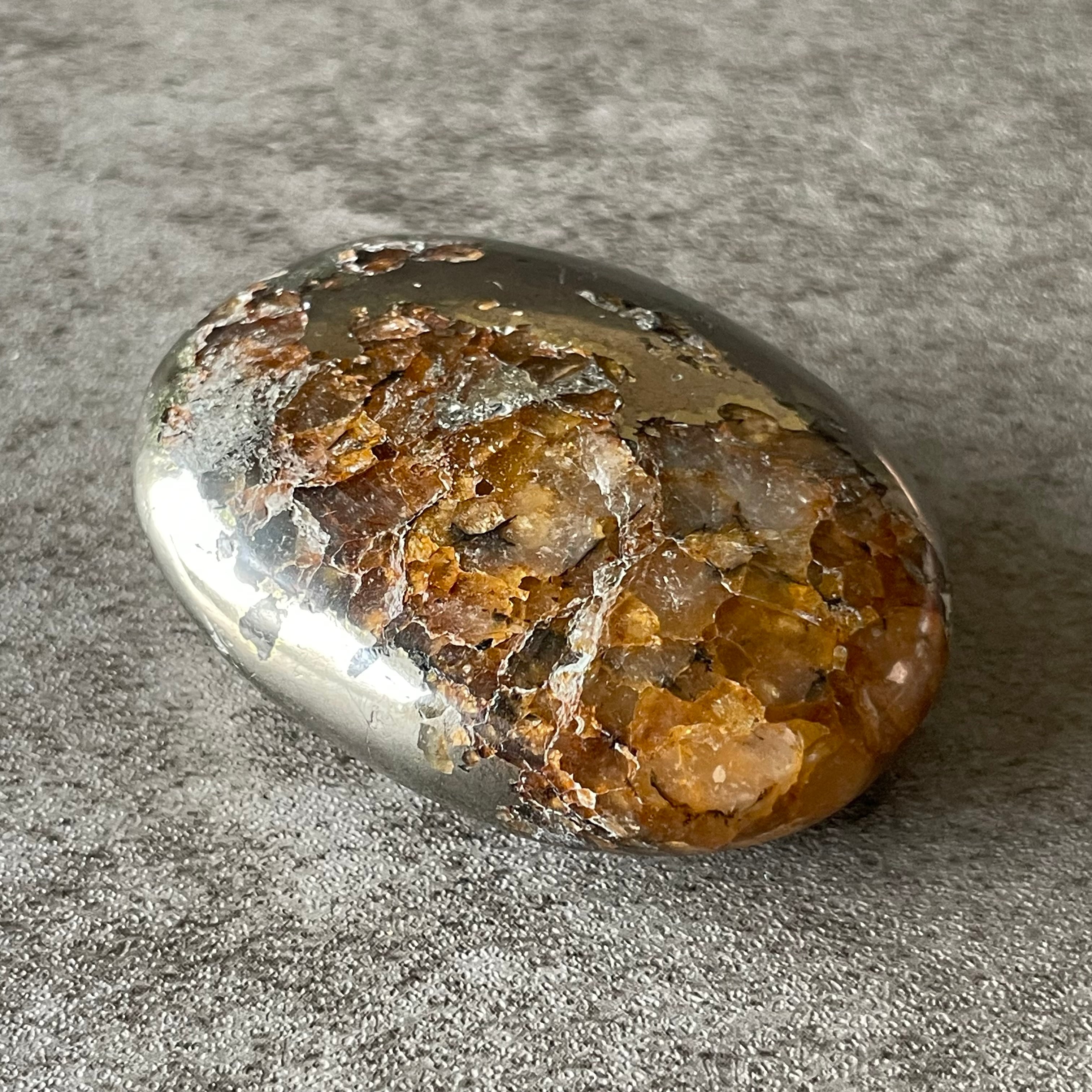 は、手のひらに収まる安心感と、内側から力が満ちてくるような存在感が魅力。癒しと浄化を象徴するゴールデンヒーラーに、行動力や豊かさを引き寄せるパイライトが重なり、心身のバランスを整えながら前向きな一歩を後押ししてくれます。