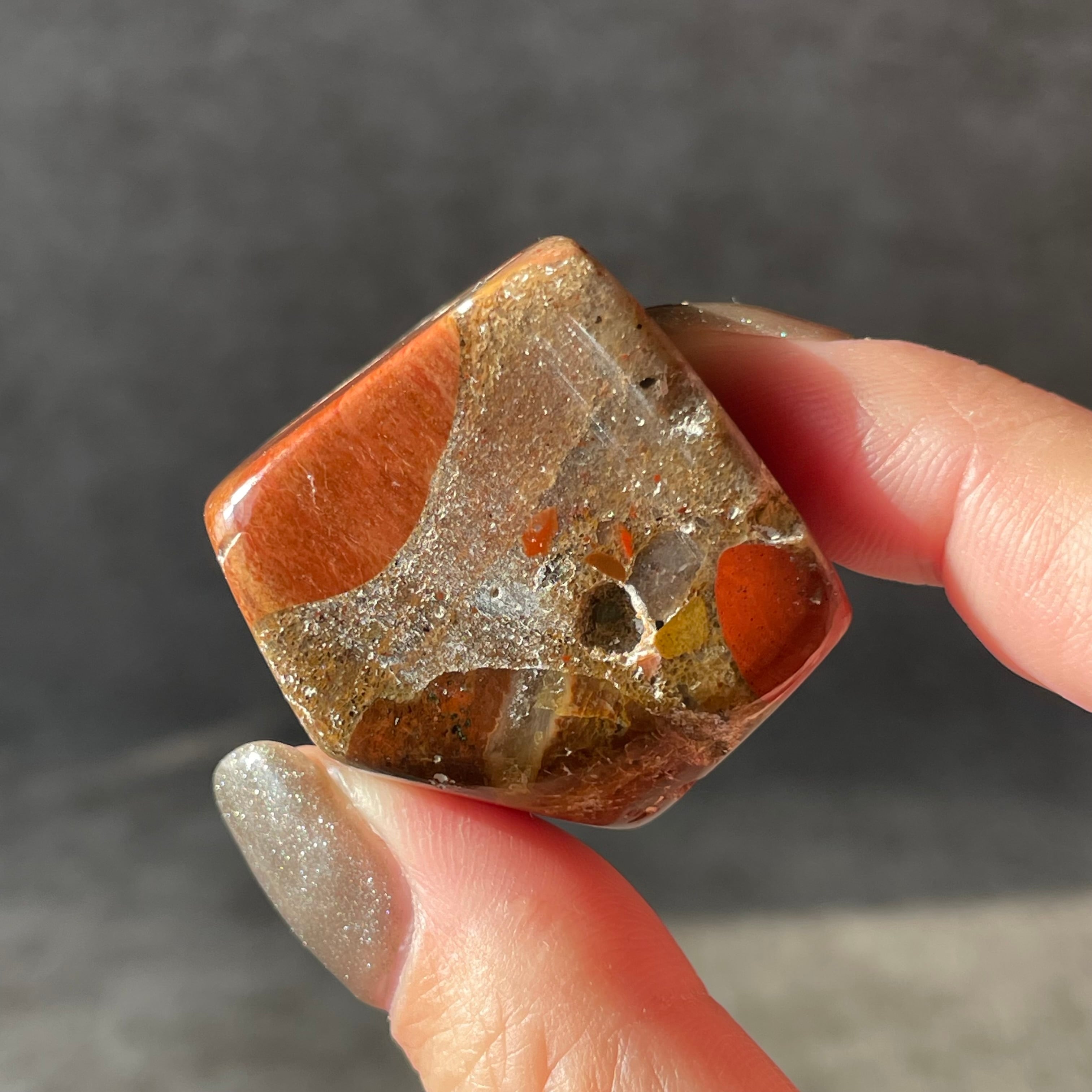 コングロマリットジャスパーは、さまざまな石が一つに集まり形成された、唯一無二の模様が魅力の天然石。
