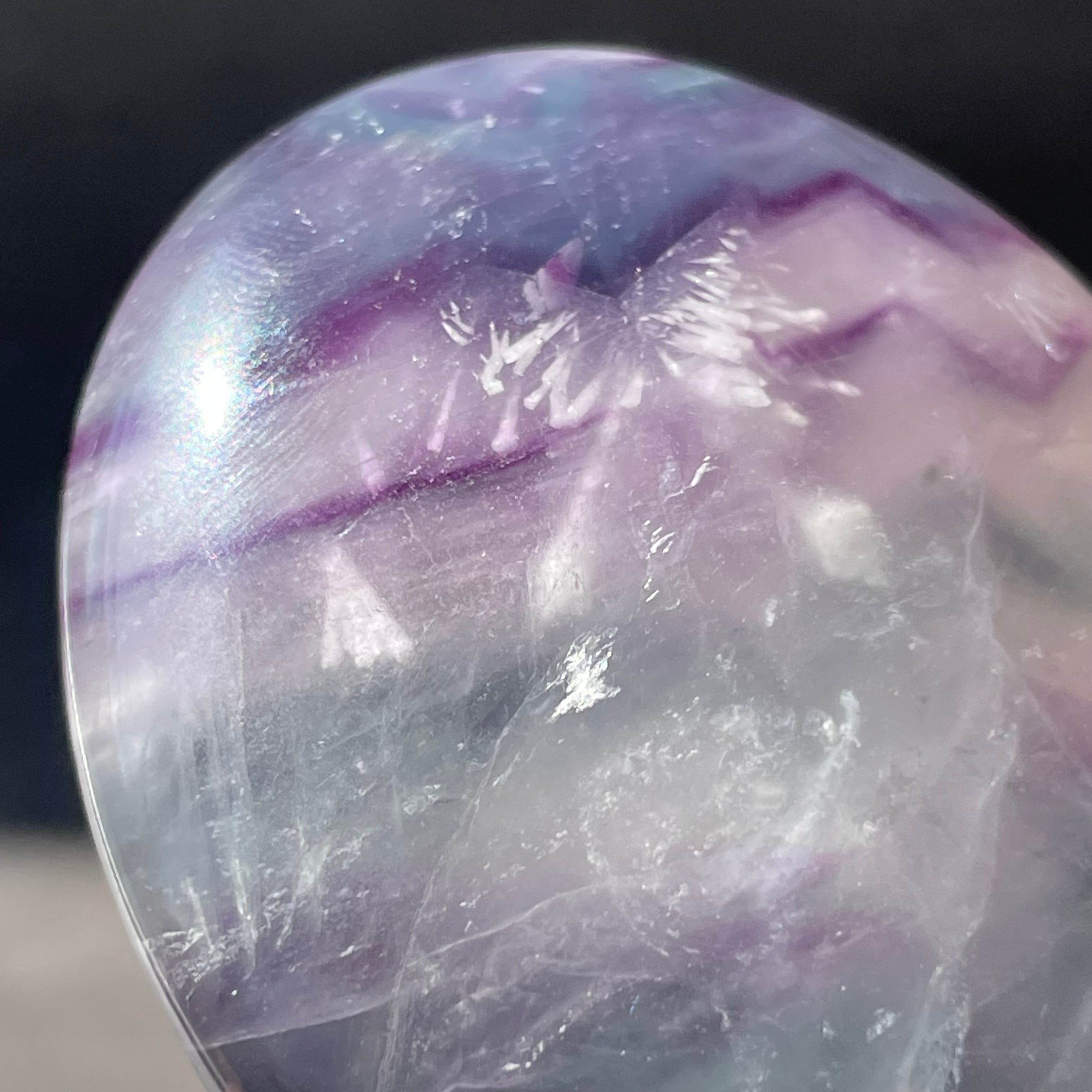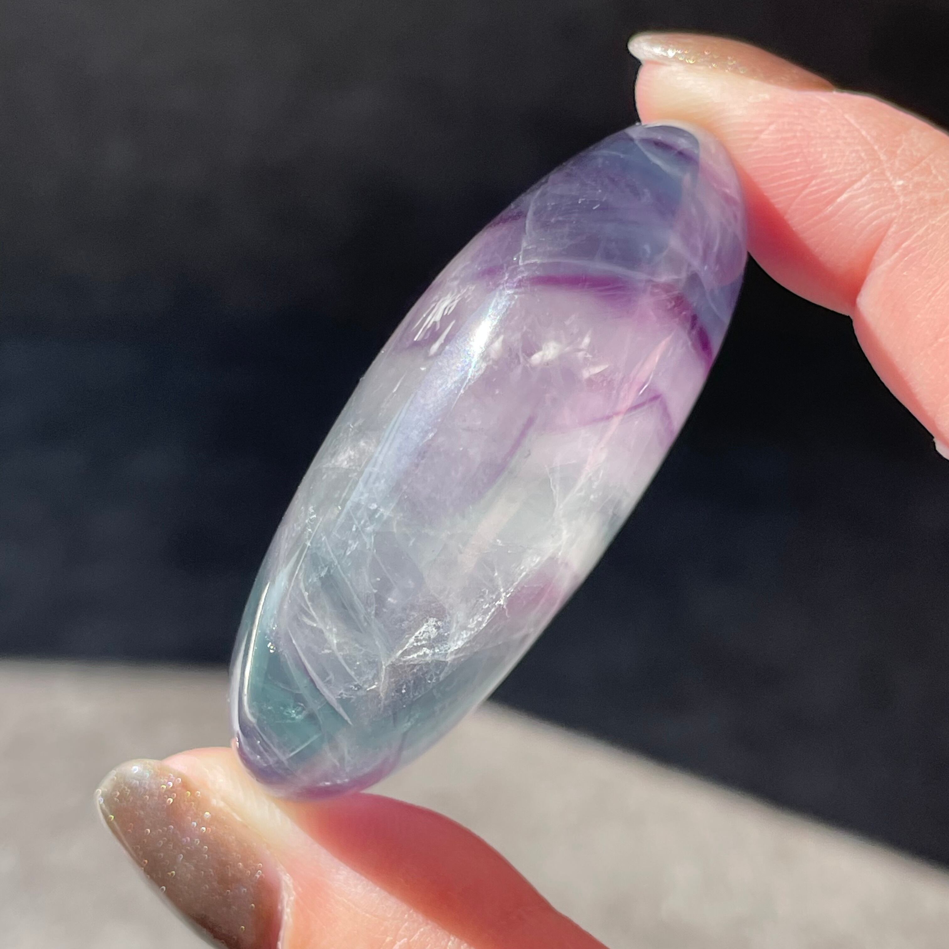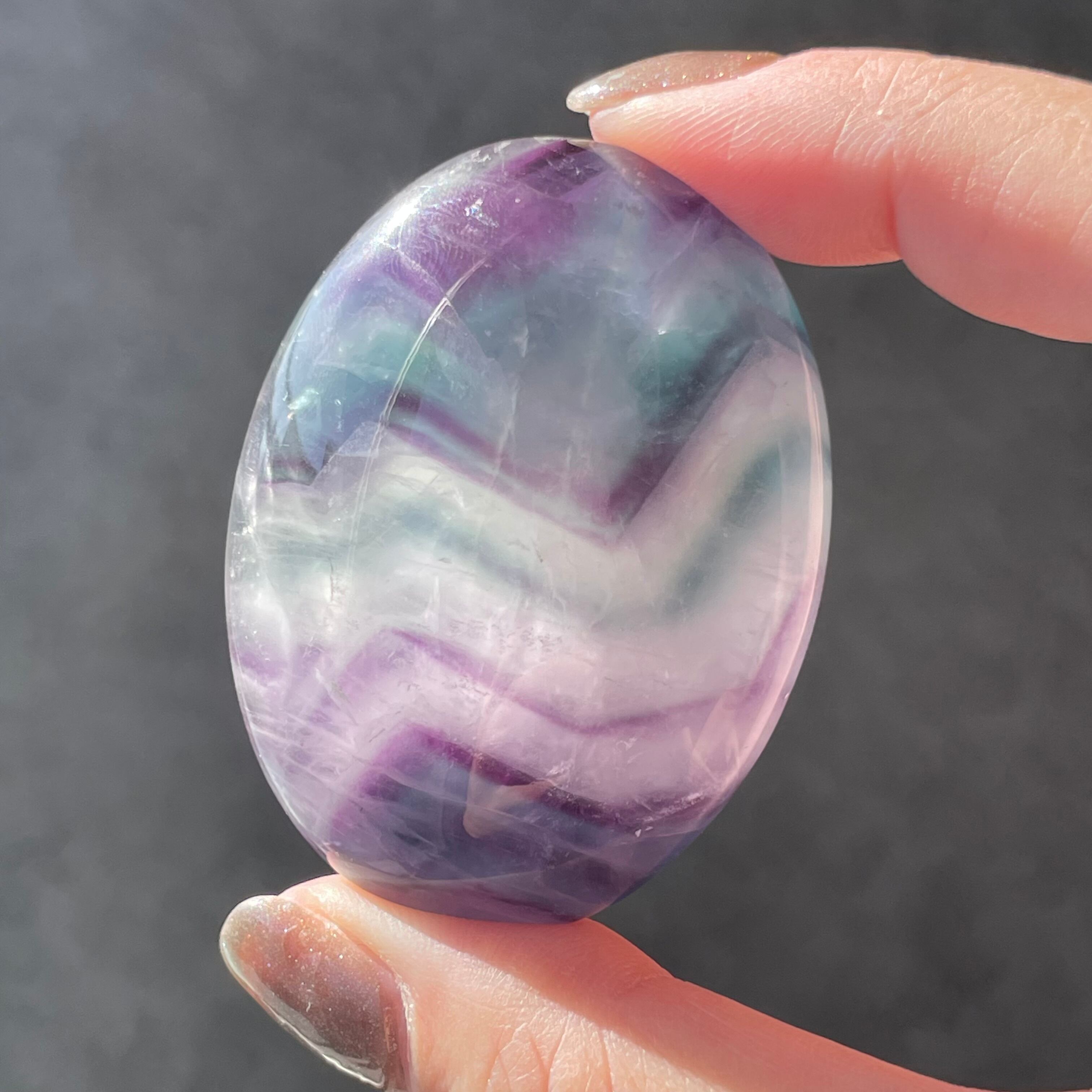 フローライトのパームは特有のジグザグ模様とガラスのような透け感に惹かれ、厳選しました。