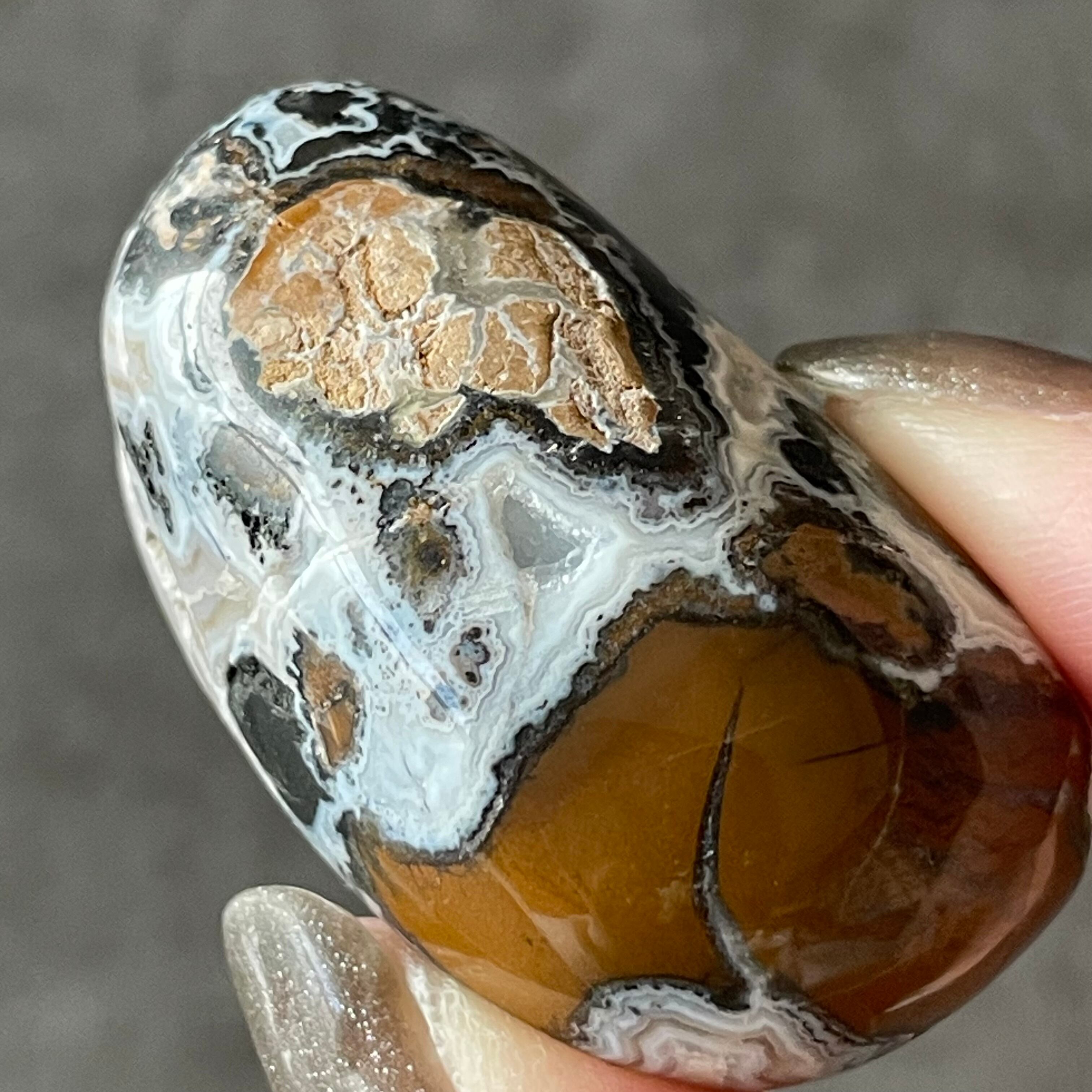 力強く大地を思わせるブラウンやグレーのコントラストが、個性的で大地のエネルギーを感じさせます。