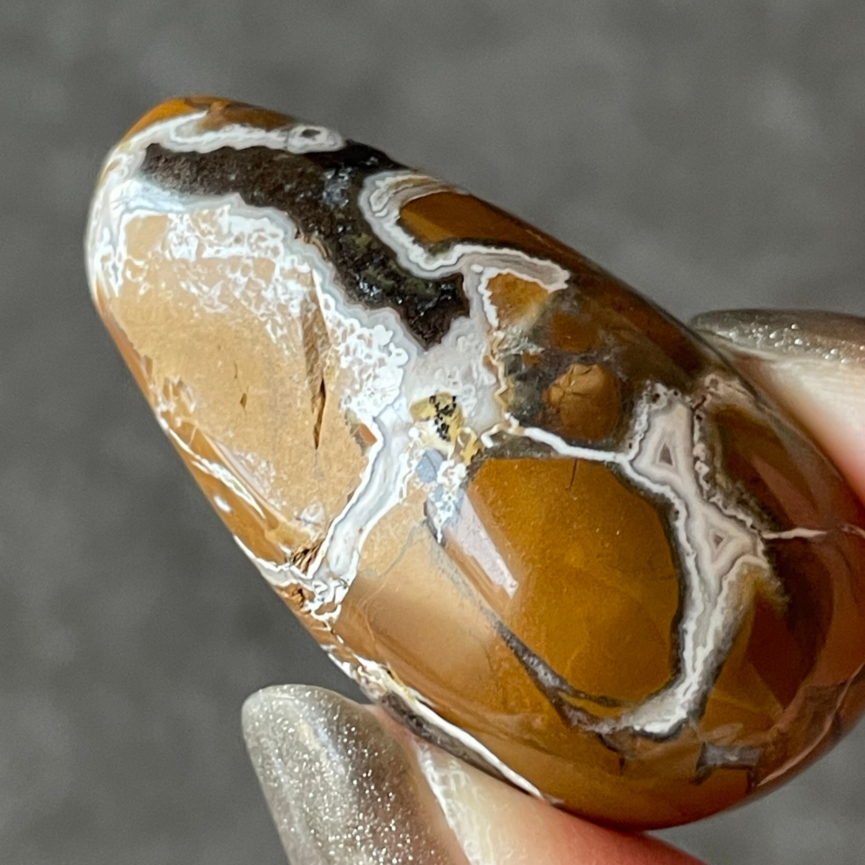 力強く大地を思わせるブラウンやグレーのコントラストが、個性的で大地のエネルギーを感じさせます。