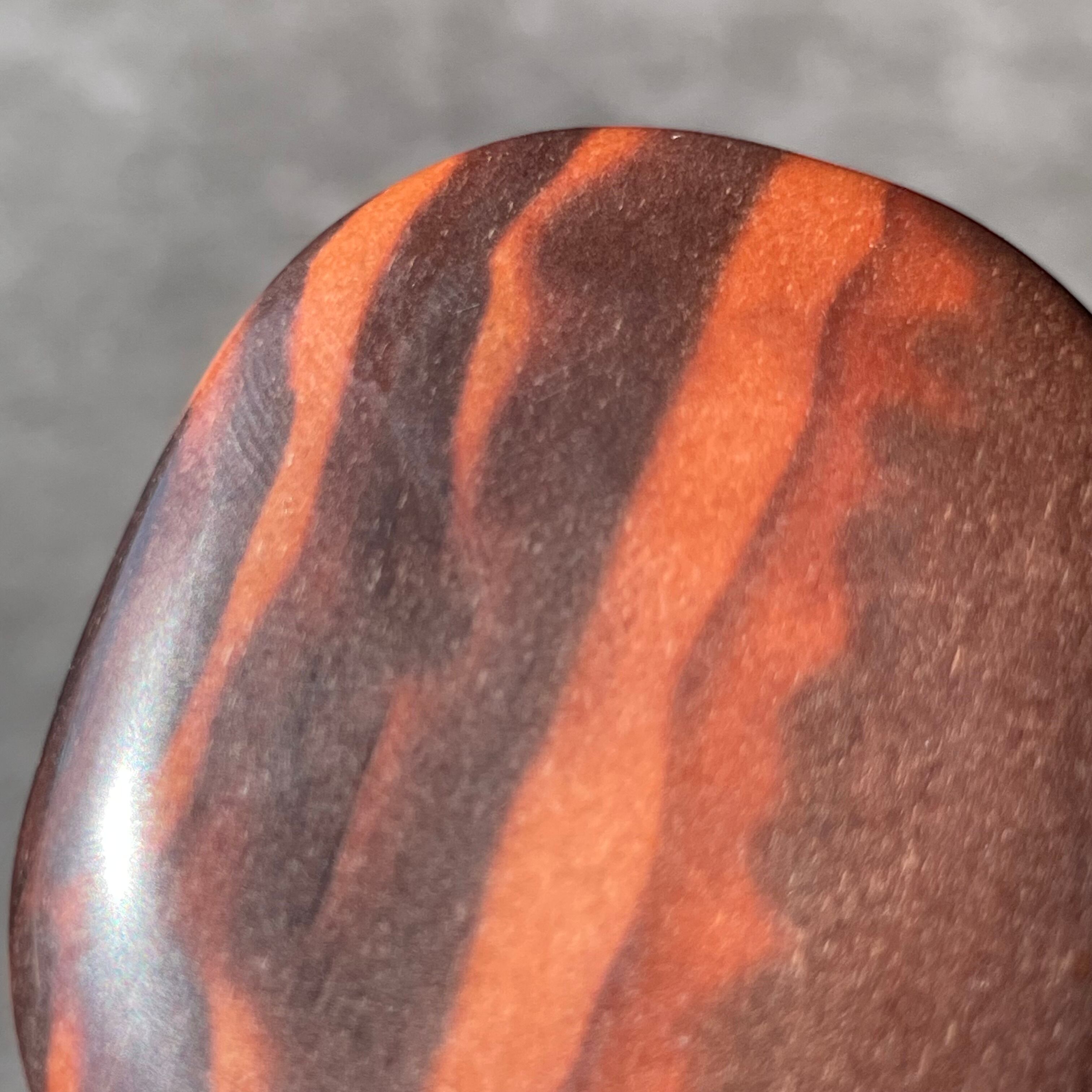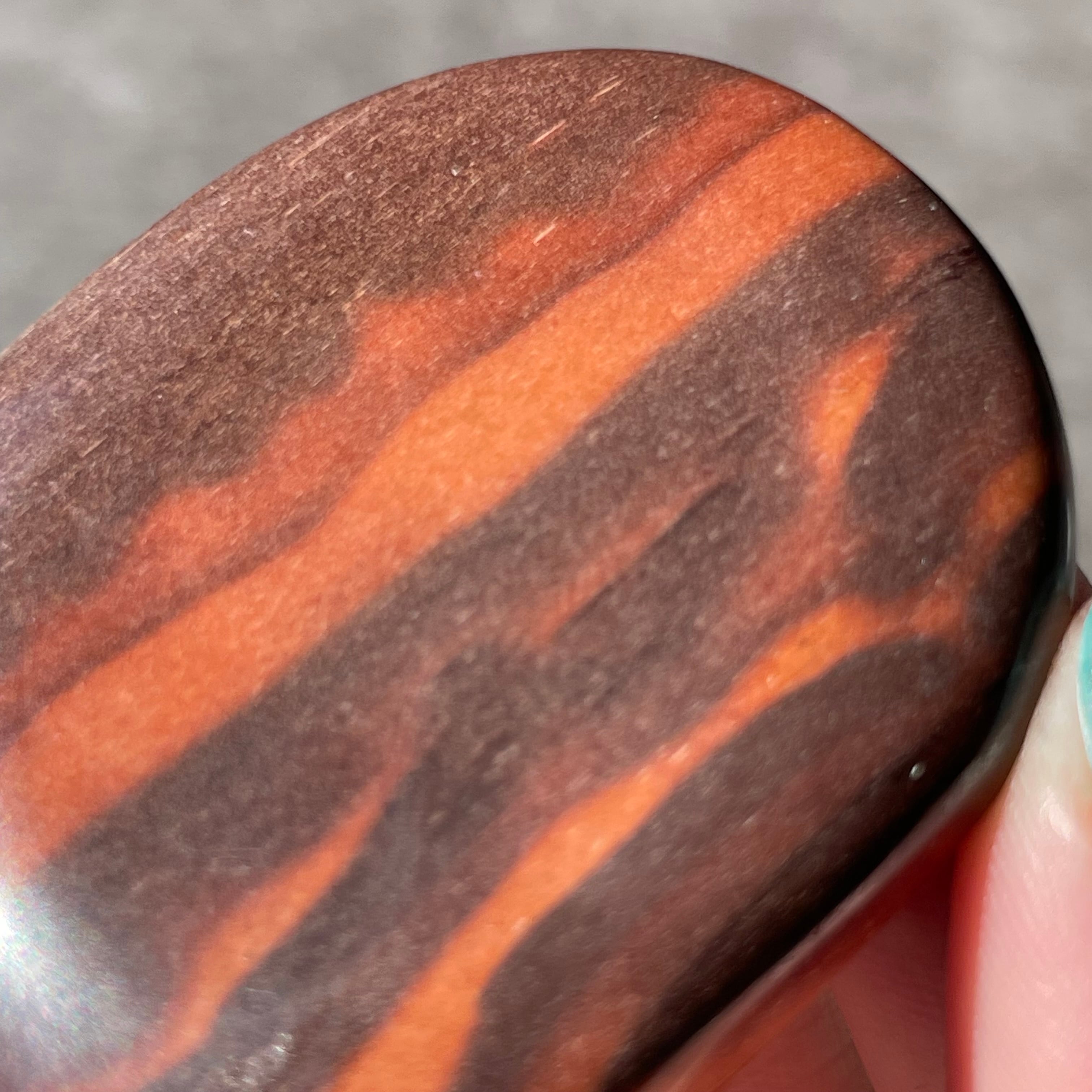 温かみのある赤茶・オレンジ・白・ブラックの帯状模様がシマウマのように見えることからゼブラと呼ばれています。