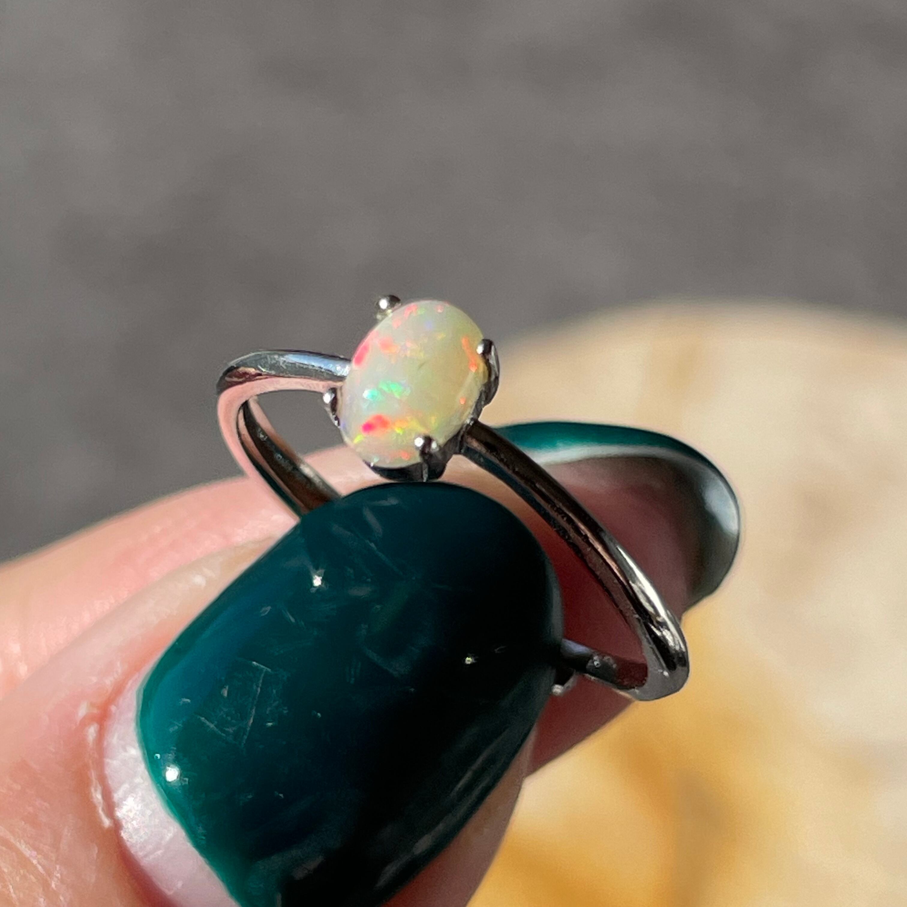 オパールのリングは、光の角度によって虹色の輝きが現れる神秘的な魅力を持つアクセサリーです。