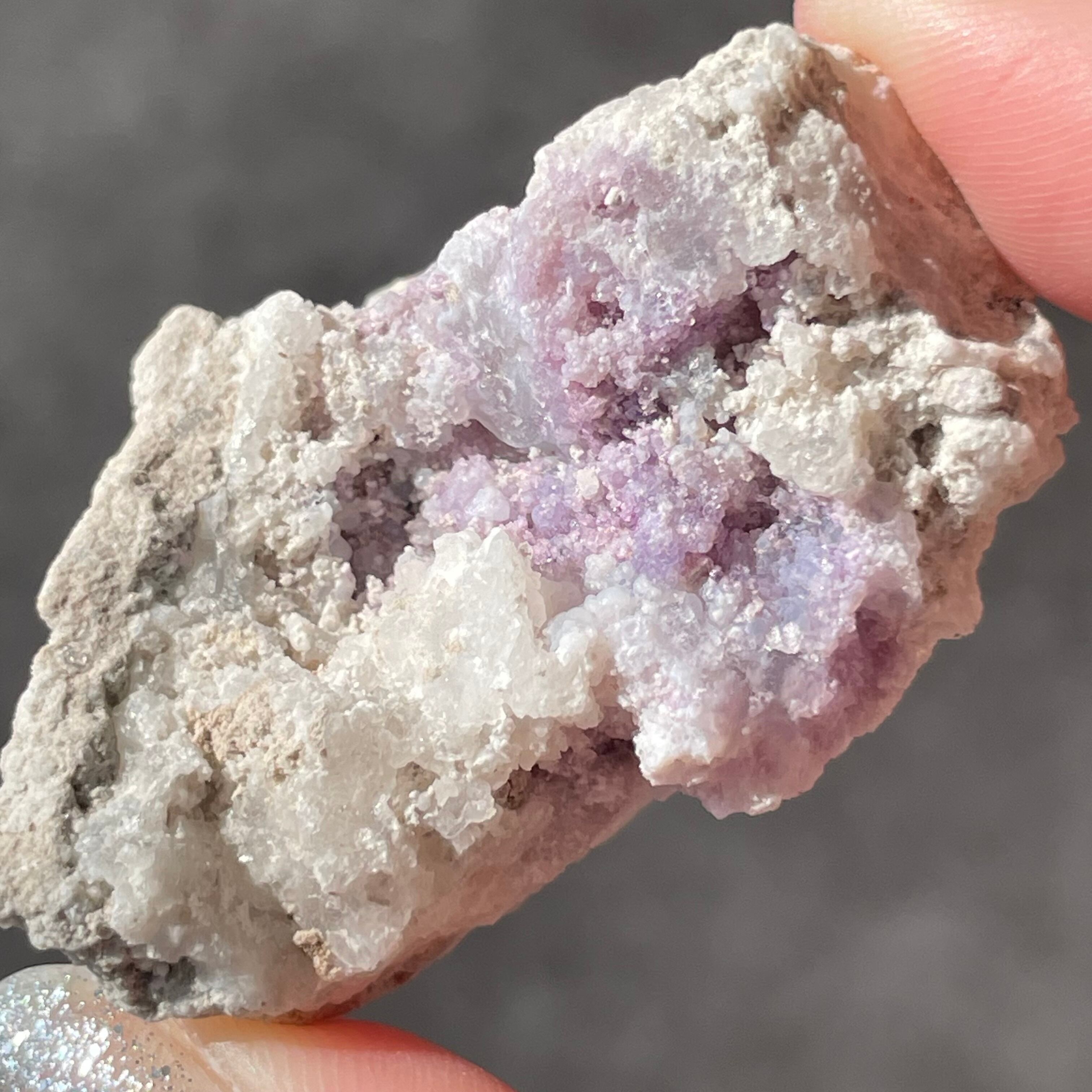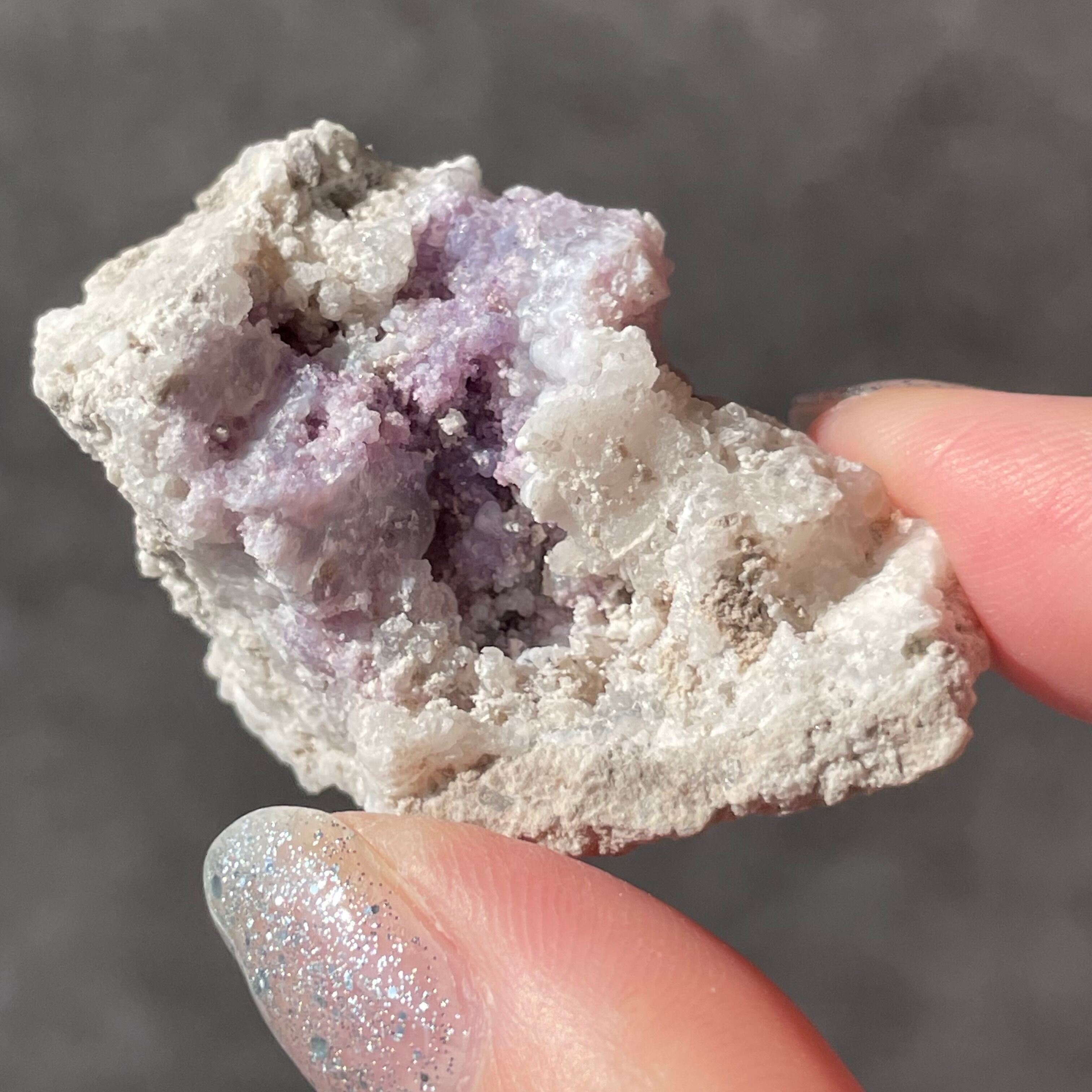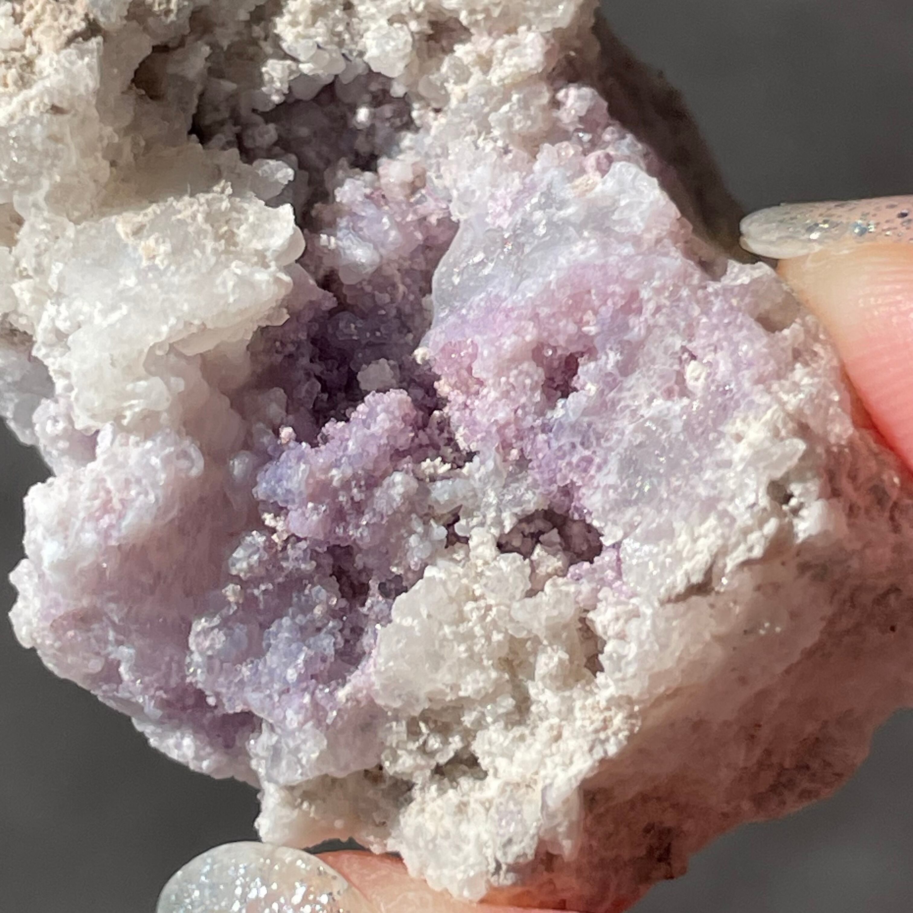 2021年に発見されたスピリットフラワーは紫色のフローライト、ブドウ状のカルセドニー、ドゥルージークォーツの結晶が織りなす素晴らしいコンビネーションです。