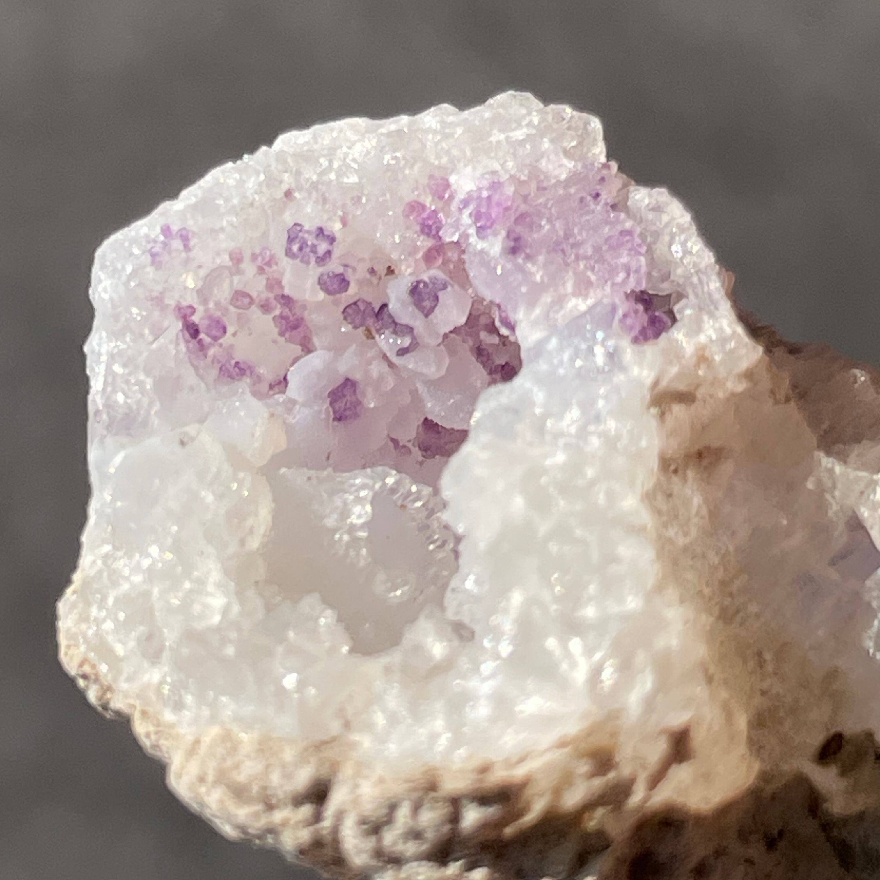 2021年に発見されたスピリットフラワーは紫色のフローライト、ブドウ状のカルセドニー、ドゥルージークォーツの結晶が織りなす素晴らしいコンビネーションです。