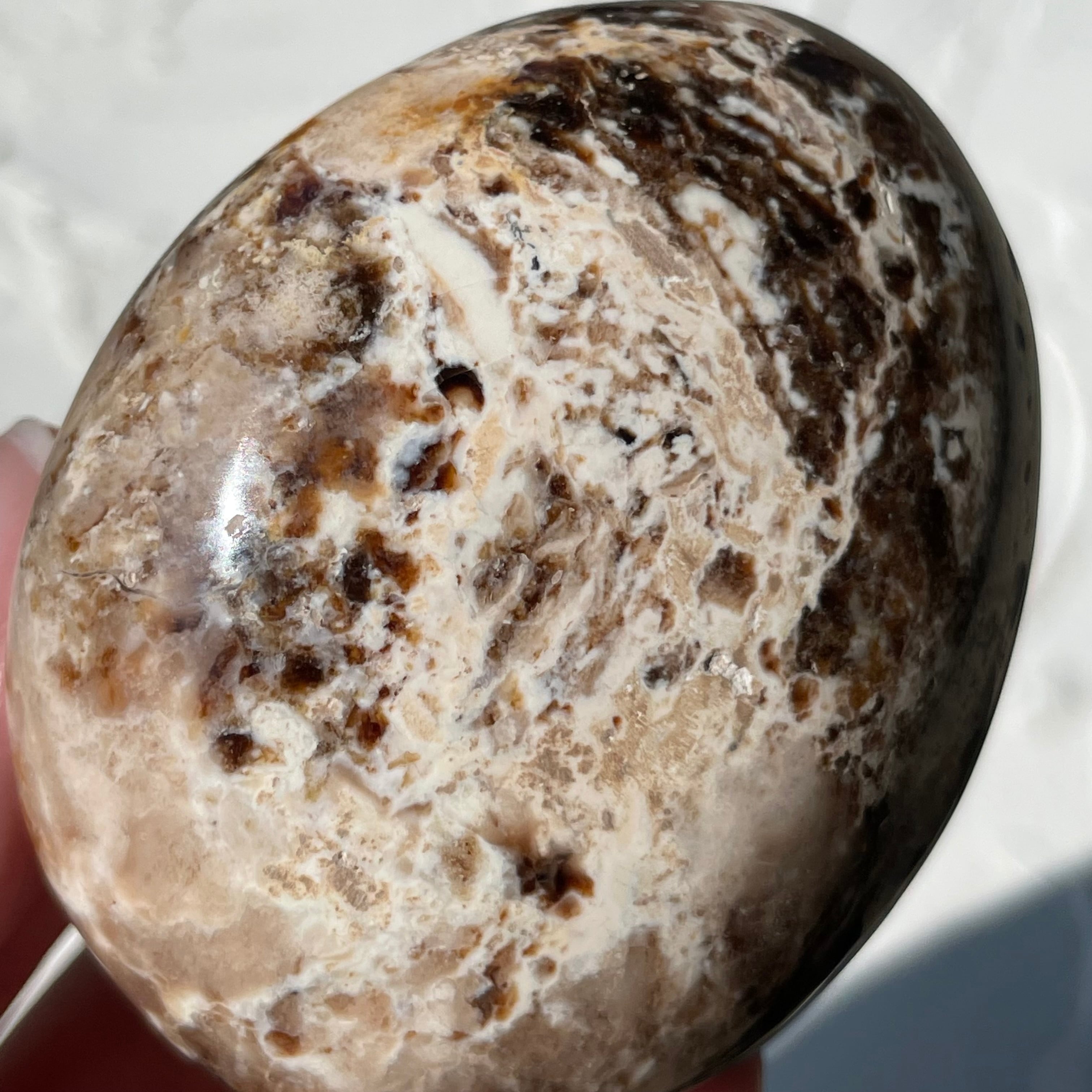 ブラックオパールのパームストーンは、まるでコーヒーゼリーやカフェラテのような深い色合いで、ベージュ系~深いブラウンまで色のコントラストがシックでオシャレで、カラーが見事に調和しています。